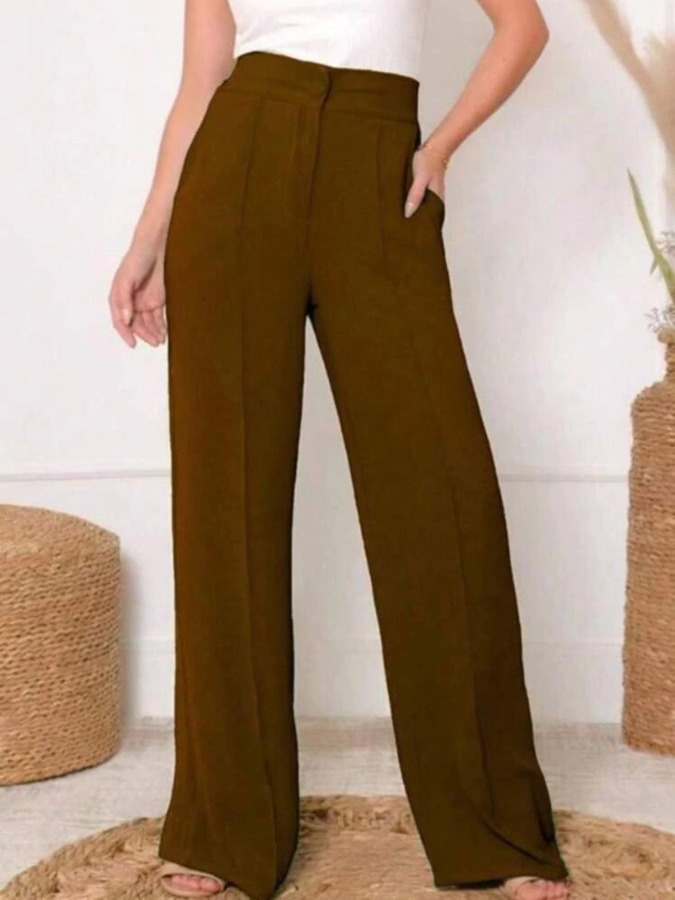 Transforme seu visual com a Calça Pantalona Duna Botão, confeccionada em tecido duna que proporciona um toque suave e conforto incomparável.