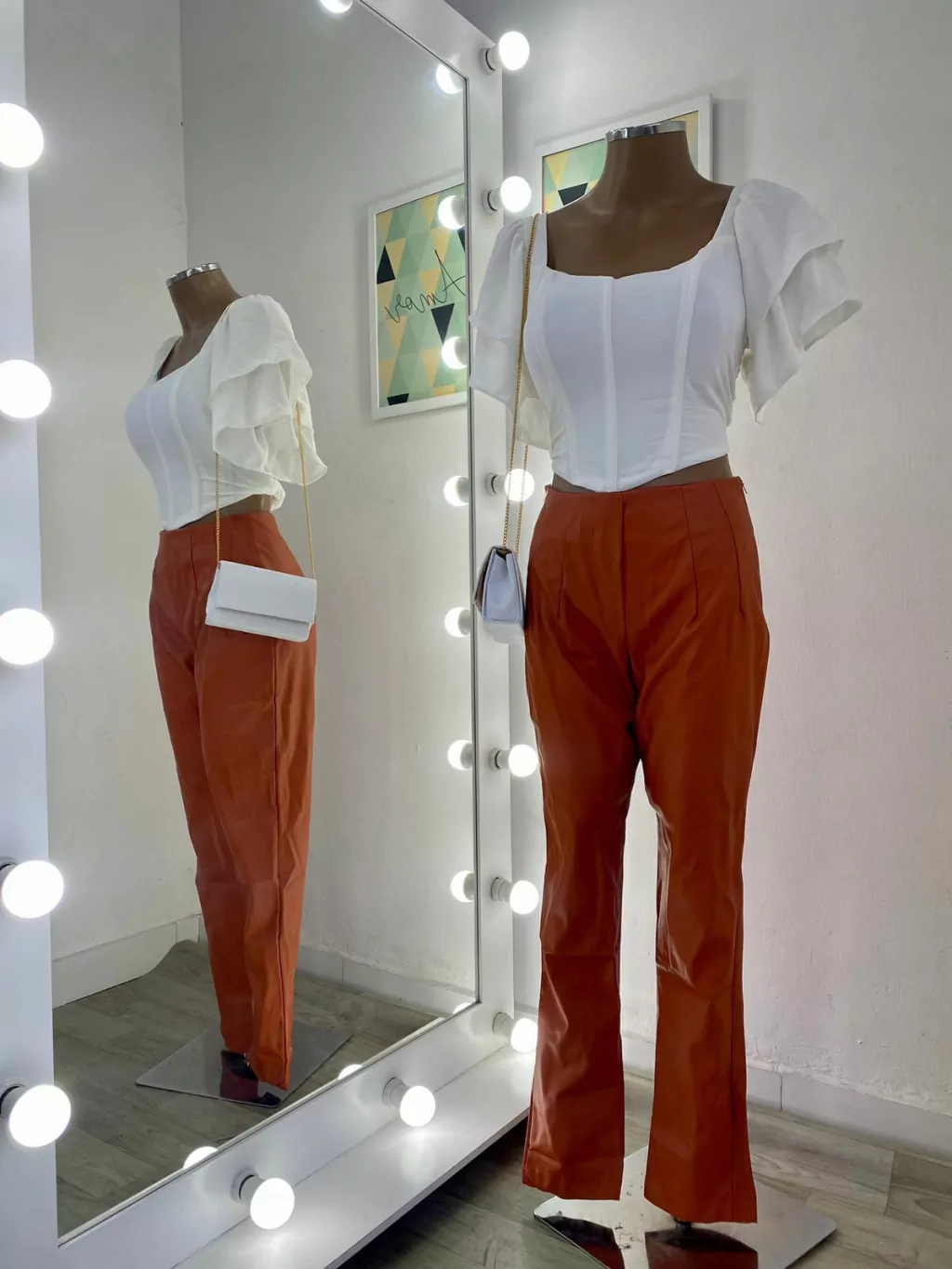 Confeccionada em tecido couro sintético de alta qualidade, esta calça une a inspiração Zara com um toque moderno e resistente. Seu design sofisticado oferece um caimento perfeito, ideal para quem busca elegância e conforto no dia a dia.