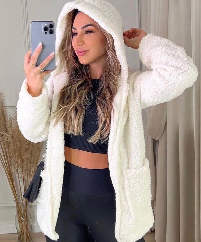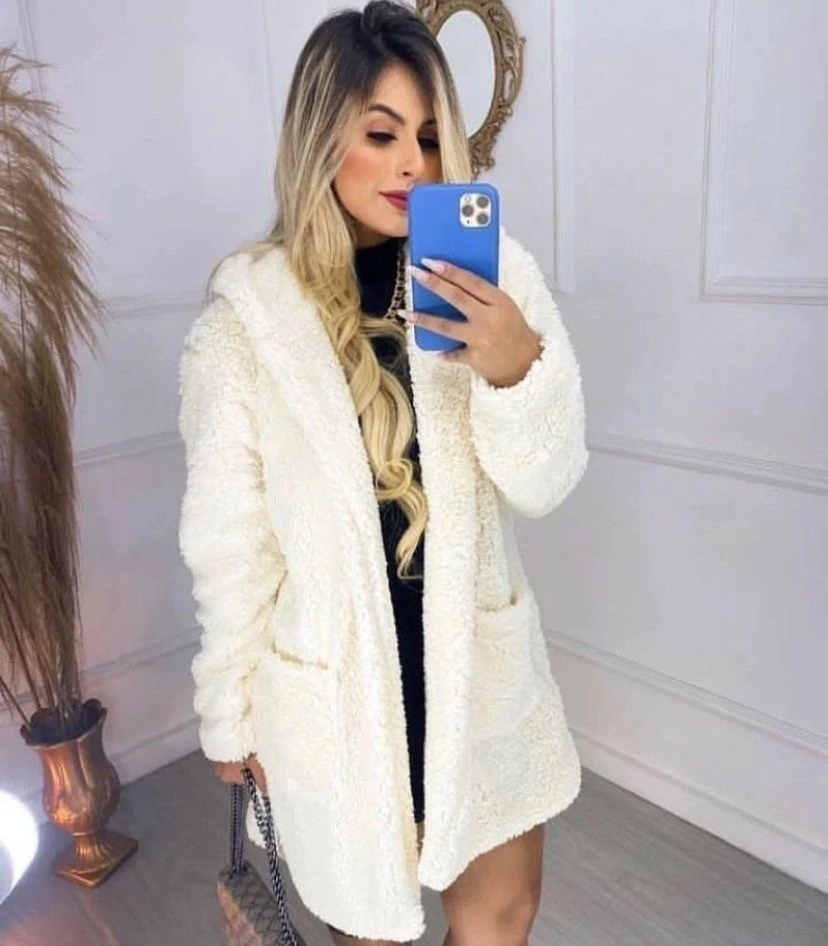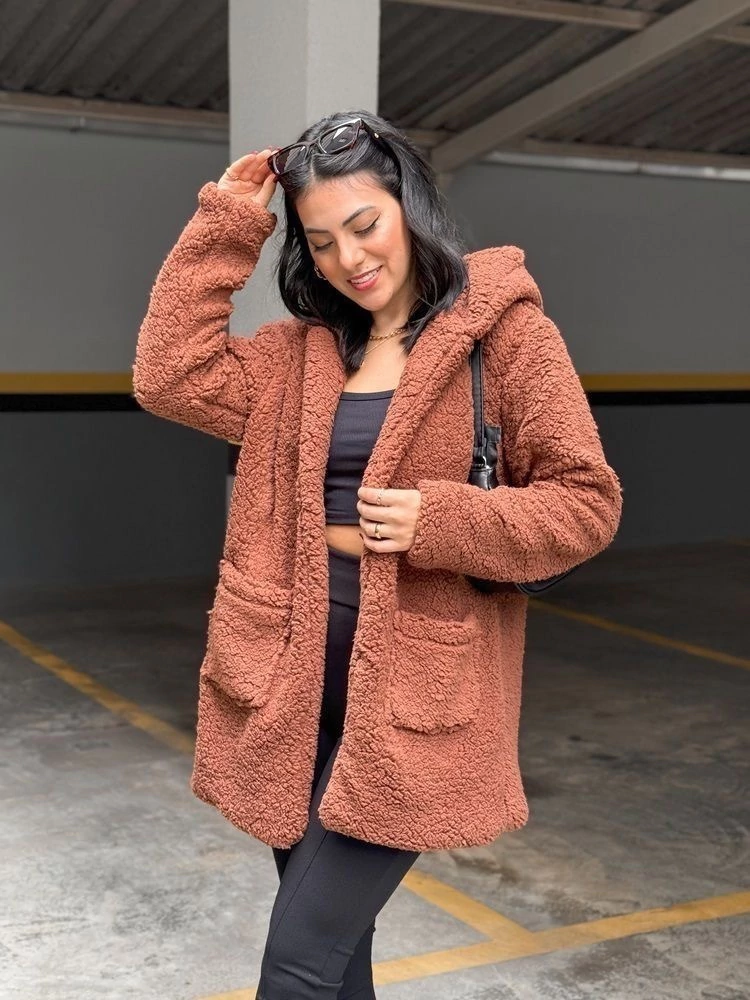 CASACO TEDDY - Seu Novo Melhor Amigo Contra o Frio! Quer um casaco que abrace você como um urso de pelúcia? Nosso Casaco Teddy é feito de tecido peluciado ultra macio, com capuz e bolso para você guardar até os segredos do inverno! Tamanho único que veste até GG, perfeito para quem não abre mão do conforto com estilo. Não passe frio, passe fofo – garanta já o seu e vire o rei ou rainha do aconchego! 🧸❄️