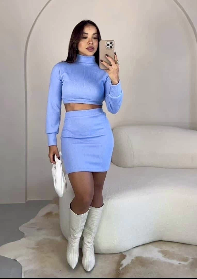 CONJUNTO 3D SAIA E CROPPED – O charme do tecido canelado 3D que valoriza seu estilo com conforto incomparável!