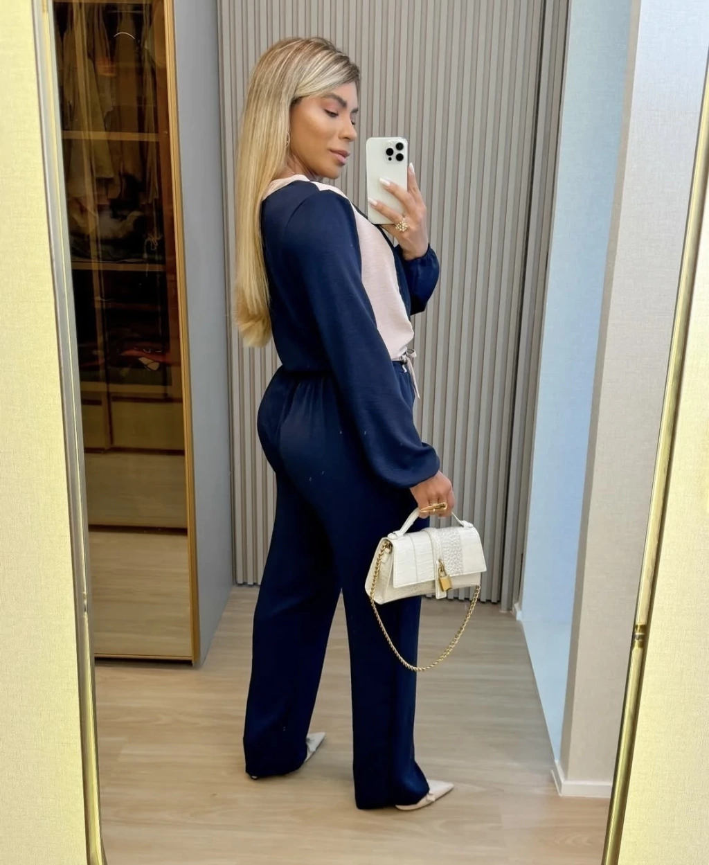 CONJUNTO DUNA LUXO — Elegância com um toque divertido! Feito com tecido duna de alta qualidade, esse conjunto é pura classe! O detalhe no decote dá aquele charme irresistível, enquanto a calça com bolso lateral é perfeita para guardar seu sorriso (ou o celular). Ah, e o cinto com detalhes? É o toque final que vai fazer você arrasar em qualquer ocasião! Não espere mais, seu look merece esse luxo com personalidade! 😍✨