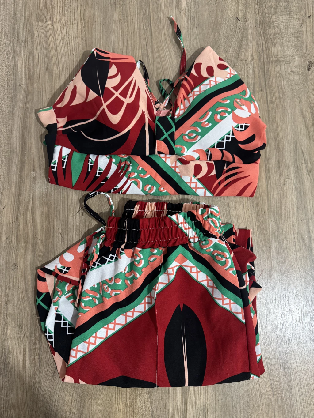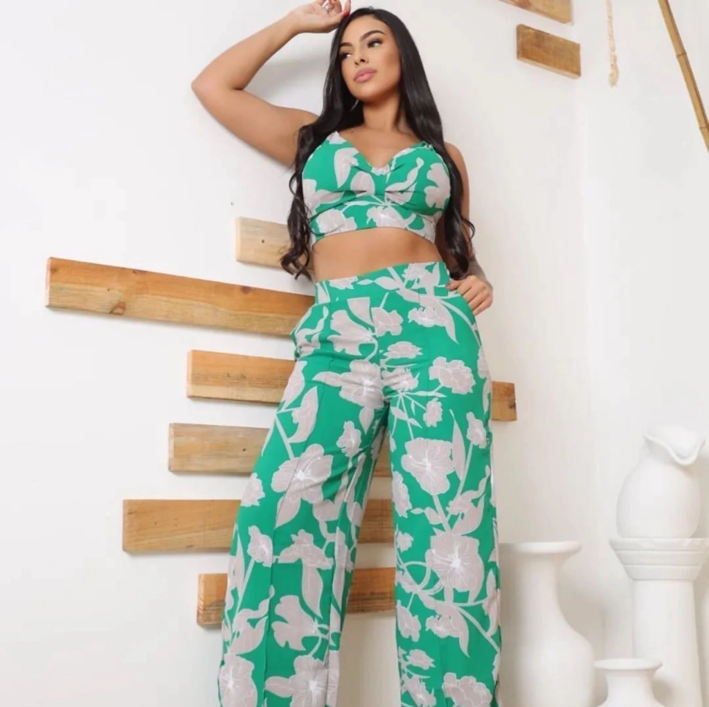Descubra a elegância e o conforto do nosso Conjunto Pantalona e Cropped. Com estampas alegres, este conjunto é perfeito para qualquer ocasião.