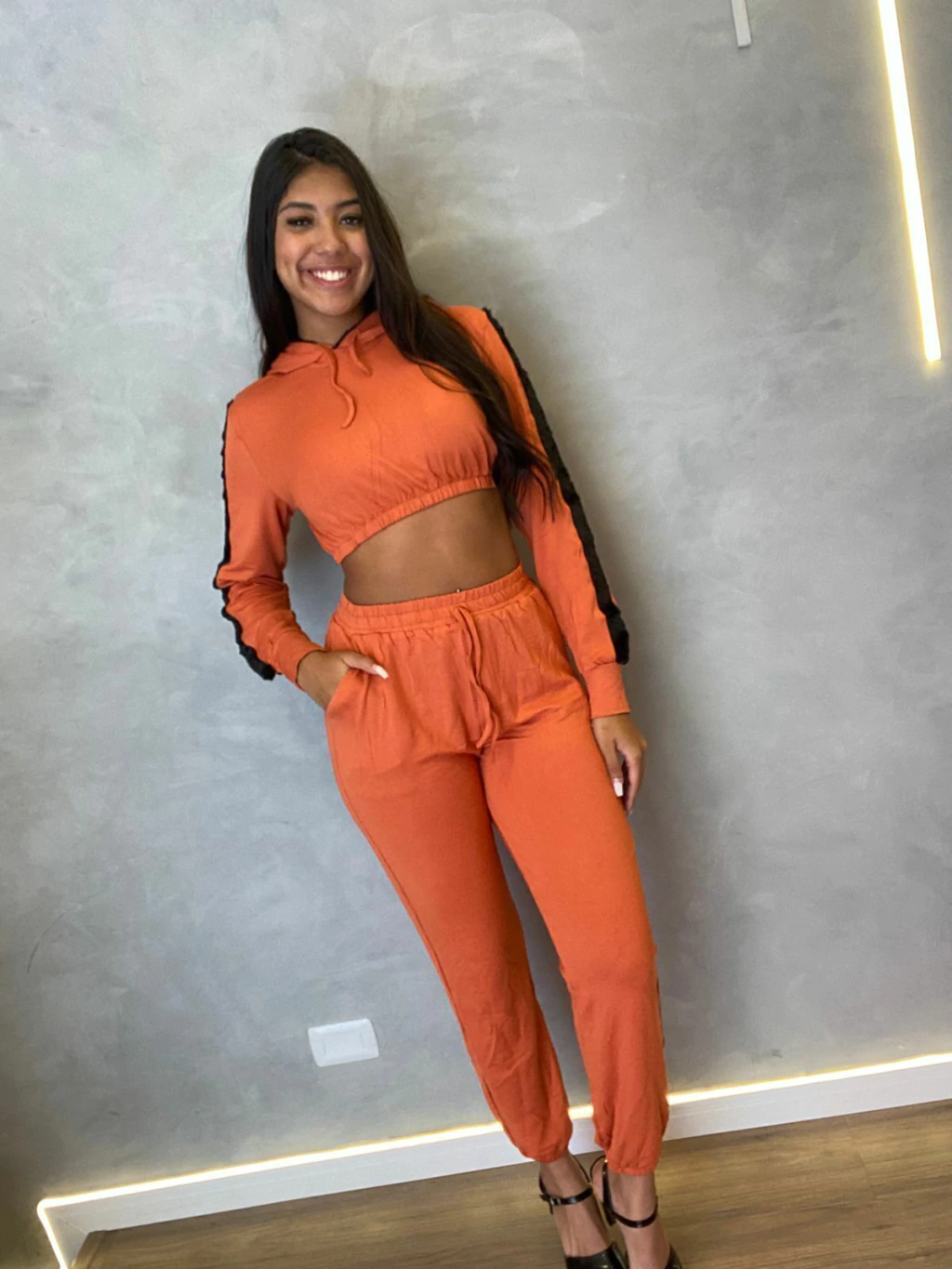 CONJUNTO MOLETINHO DAFINE – Conforto com estilo e muita fofura! O cropped vem com toca, cordãozinho pra ajustar e punhos nas mangas, com aquele detalhe de pelinho carneirinho que é puro charme. A calça tem bolso frontal, cordão fake e punho que abraça suas pernas com carinho. Perfeito para quem quer esquentar e arrasar no visual! Não deixe o frio roubar sua pose, vem de Dafine! ❄️🔥
