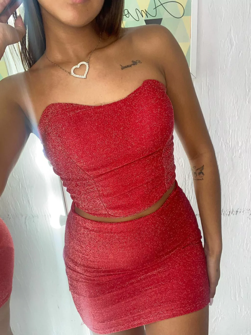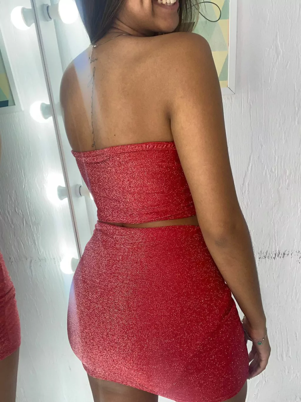 Se você quer brilhar mais que a estrela da praia, conheça o nosso Conjunto Nanda! Feito com tecido lurex, ele é o que faltava para o seu guarda-roupa.