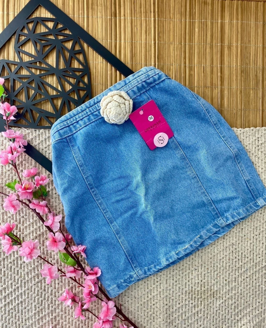 Quer arrasar com uma saia que é puro charme? Nossa Saia Jeans Florzinha é a escolha perfeita! Com bolso atrás para aquele toque prático e um zíper atrás que facilita na hora de vestir (sem drama!), essa peça une conforto e estilo num combo imbatível.