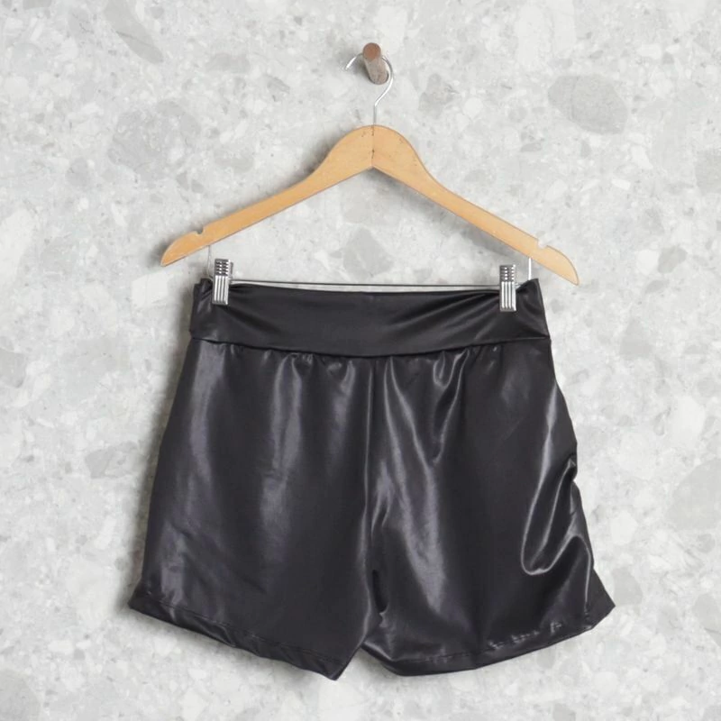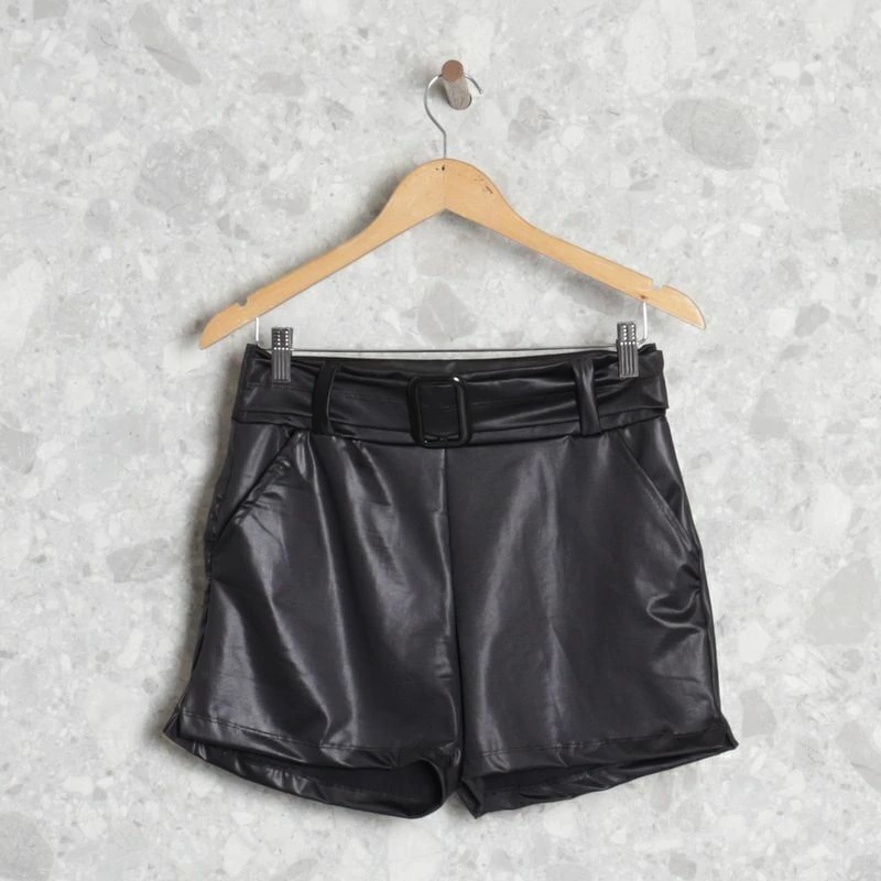 Shorts cirrê preto com acabamento brilhoso, cintura alta e modelagem justa que valoriza as curvas. Acompanha cinto preto para dar um toque extra de estilo e sofisticação. Perfeito para compor looks ousados, modernos e cheios de atitude! 🖤✨