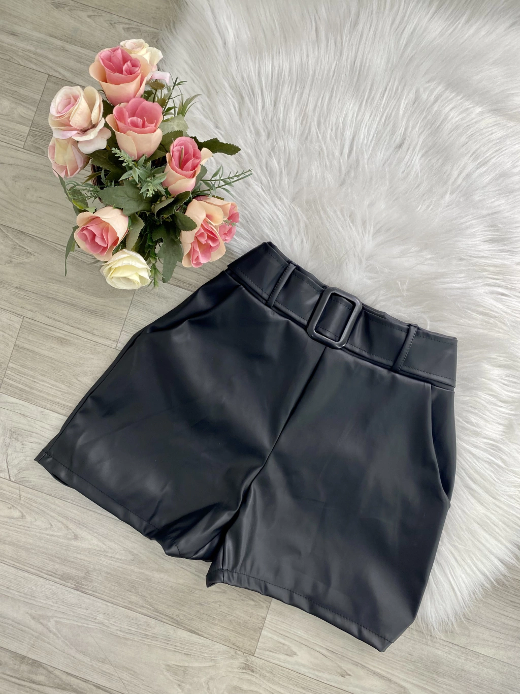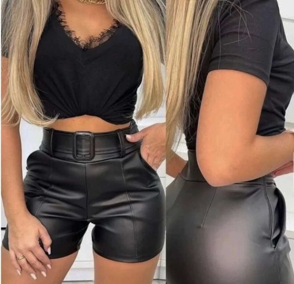 SHORTS COURO SINTÉTICO CINTO - Estilo e Versatilidade em Uma Peça!