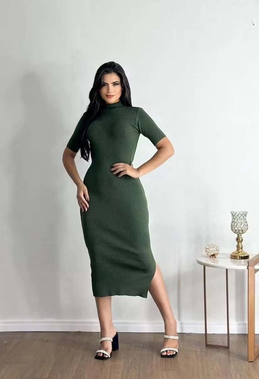 VESTIDO MIDI CANELADO – O Poder da Fenda que Veste Até o 42!