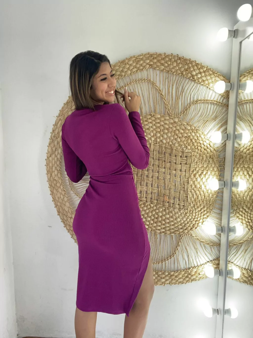 Descubra o nosso Vestido MIDI Gabriela, confeccionado em tecido Anarruga de alta qualidade, que garante um caimento perfeito e um toque suave na pele.